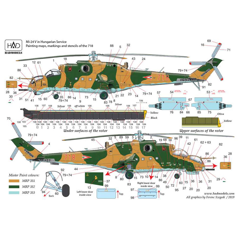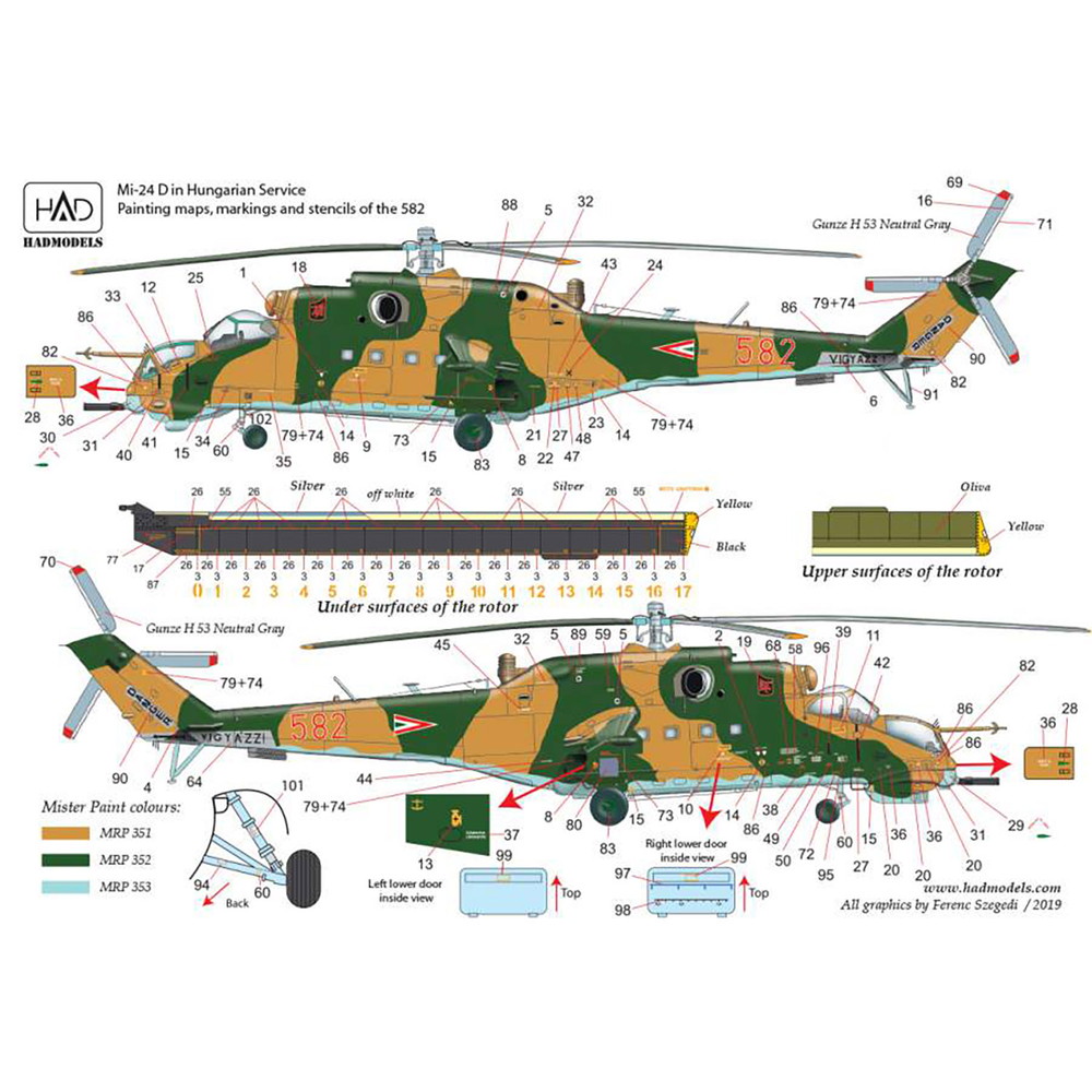 が模擬戦闘の訓練を実施した際に参加したハンガリー空軍のMi-24の機体のマーキングを再現しています。