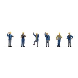 動きがはっきりと分かるポージングで6体をセット。頭には黄色のヘルメットを被り、