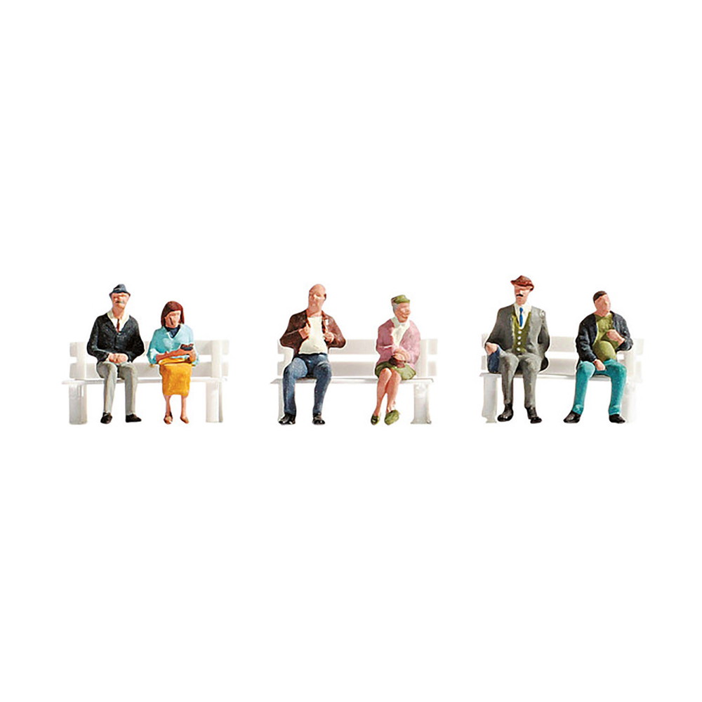 モデルのフィギュアは鉄道の駅舎内やプラットホームで列車の到着を待ってベンチに腰掛ける乗客を再現。