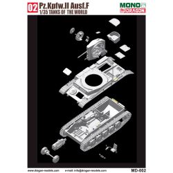 II号戦車のスタイルをディテールまでしっかりと表現。リーフスプリングなどを別パーツで再現した足回りは履帯には組み立て式のマジクトラックを採用して、仕上がりの実感を高めます。
