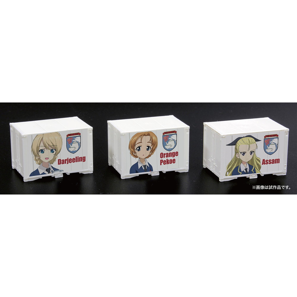 このモデルでは聖グロリアーナ女学院のダージリン、オレンジペコ、アッサムの3名をコンテナ側面に再現しました。