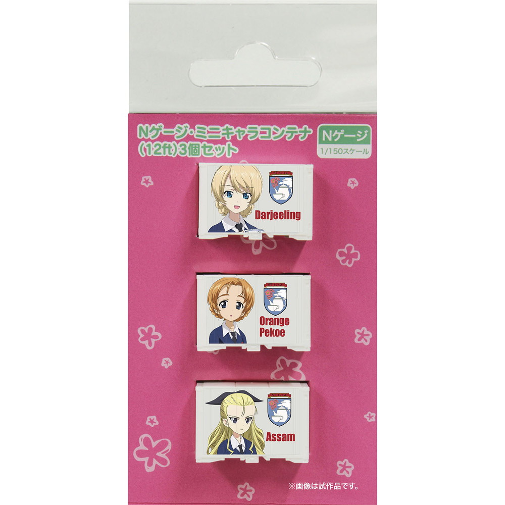 鉄道模型ファンにはおなじみのNゲージサイズのコンテナにガルパンファンには見逃せないキャラクターのイラストをプリント。