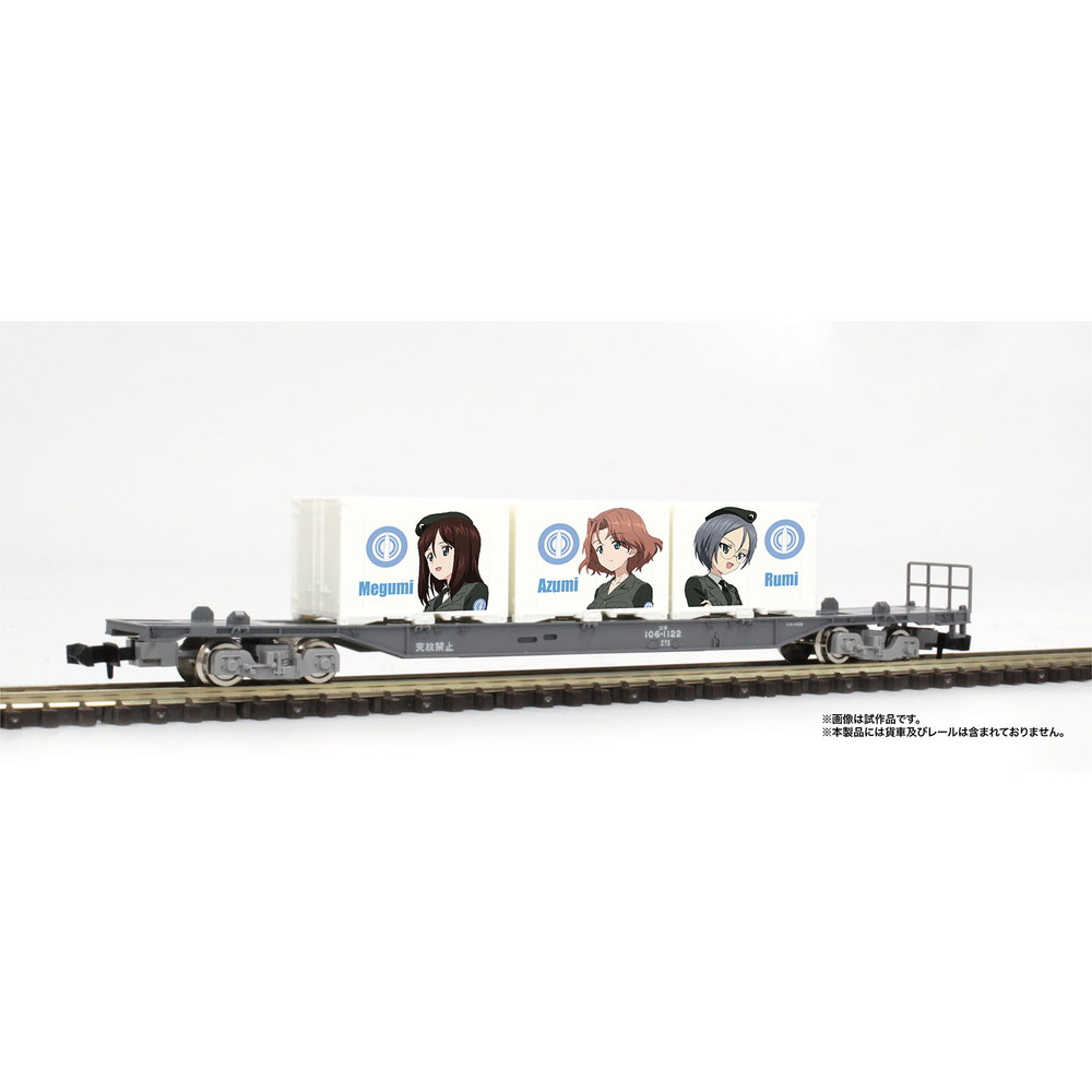 鉄道模型ファンにはおなじみのNゲージサイズのコンテナにガルパンファンには見逃せないキャラクターのイラストをプリント。