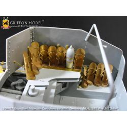 コンテナのパーツを収録。特徴ある形のコンテナ本体と収納した砲弾を固定するベルトもしっかりと再現して実感も十分です。