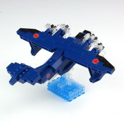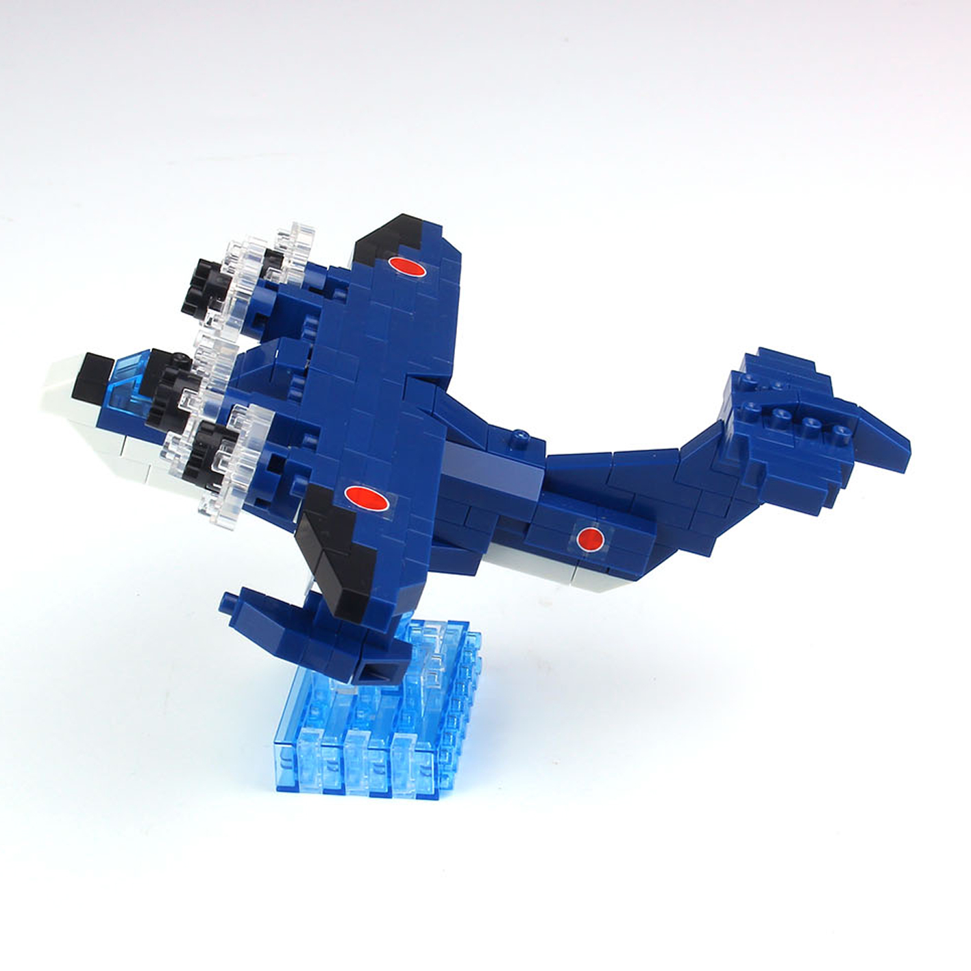 このセットはカワダと新明和工業のコラボレーションから生まれたナノブロックのキットです。220ピースの各種ナノブロックを組み合わせて新明和工業が開発、生産する日本が誇る傑作飛行艇、新明和US-2救難飛行艇を再現します。組み立てに必要なブロックに詳しい組み立て説明書、さらに、完成後に機体に貼る日の丸のシールもセット。しかも、海上自衛隊が運用する機体のカラーに合わせてブロックもブルー、ホワイト、ブラック、さらに、クリア、クリアブルーなどに分けてそれぞれの場所にあったカラーのブロックを組み合わせています。