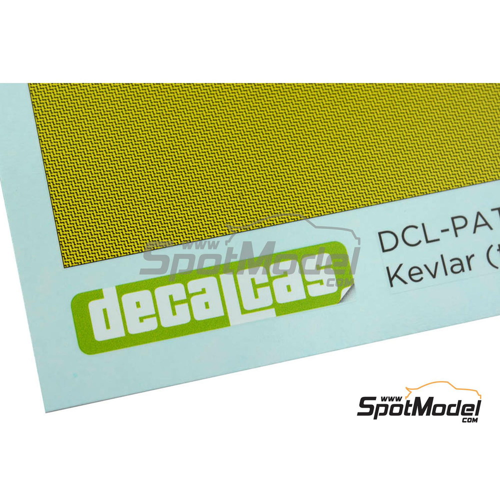 このデカールシートは実車のレーシングカーに使われている「ハイブリッドツイル織りカーボンケブラー」