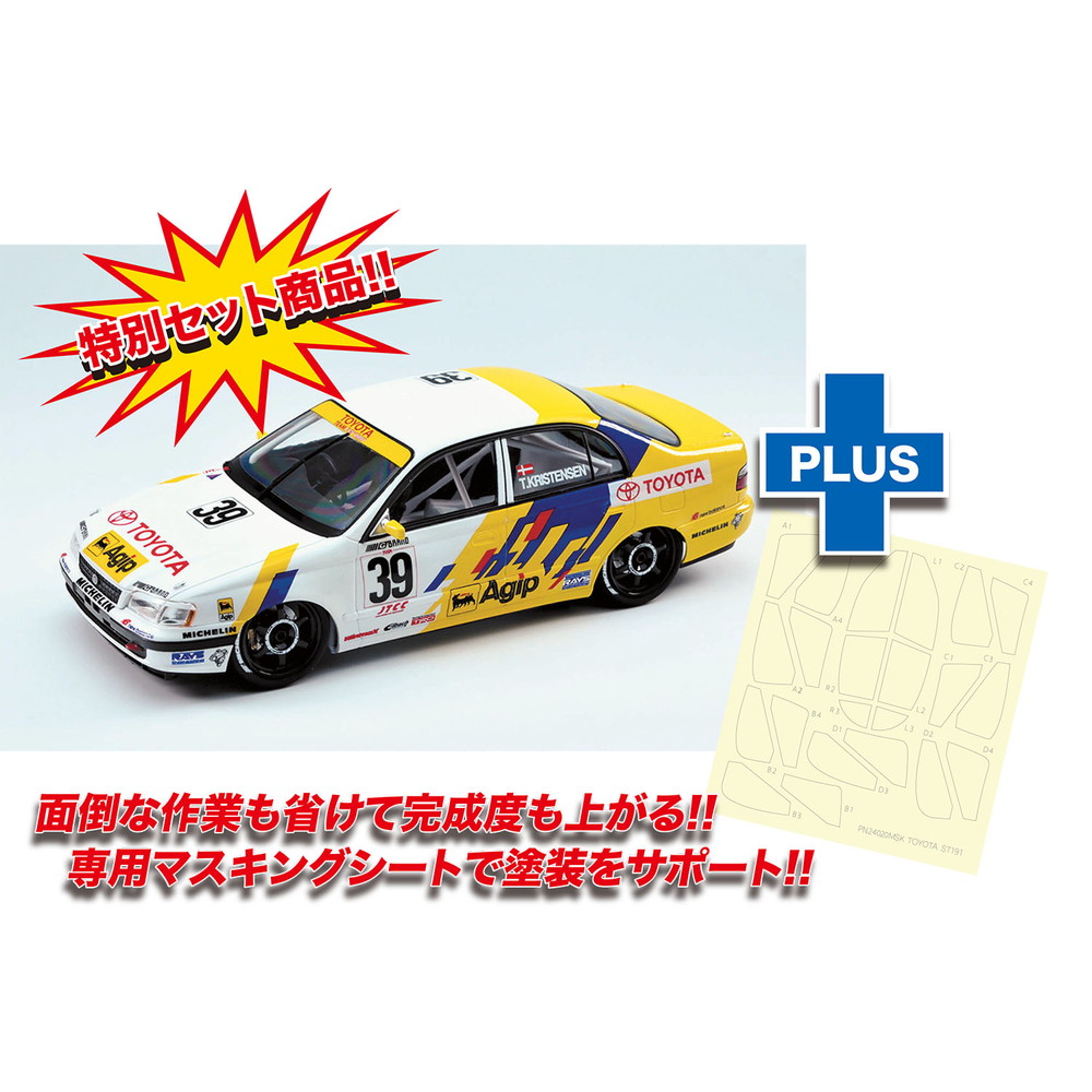 This is a set with the plastic model kit and masking sheet for 1/24 PLATZ/NUNU TOYOTA CORONA ST191 '94 JTCC SUZUKA Winner(item no. PN24020).