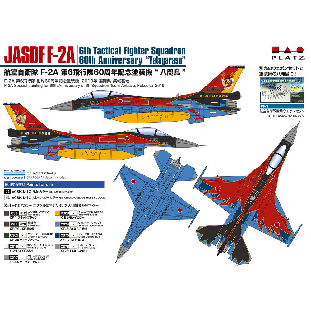 The F-2A fighter of JASDF is jointly developed by Japan and the United States as a successor to the support fighter F-1, and started operation in 2000. Currently, the F-2A is on the mission in the 3rd Squadron at Hyakuri AB and the 6th and 8th Squadrons at Tsuiki AB. Each squadron applies special painting for commemorative events, and the No. 523 of 6th Squadron at Tsuiki AB appeared with special marking in 2019 became a big topic at the time. To commemorate the 60th anniversary of the squadron formation, the No. 558 was painted with a red Yatagarasu(three-legged crow) and left a strong impression.