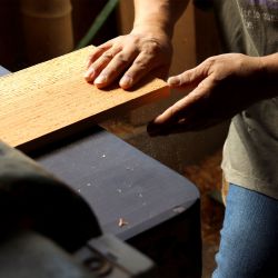・板の曲がりを補正しつつ、板同士を釘を使わずにかわで接着。一枚板かと思うほど見た目にも美しい茶箱が出来上がります