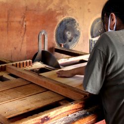・茶箱の大きさに合わせて選別された杉板を時間をかけ自然乾燥