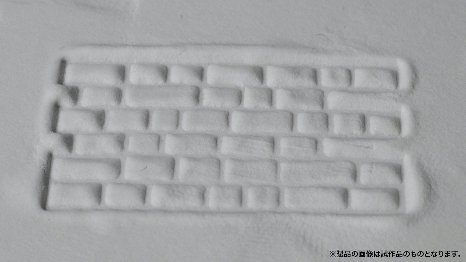 クレイを素材の上に伸ばしてセットした後、クレイが乾く前にスタンプを押す要領でクレイの表面に押し付けて模様を作ります。