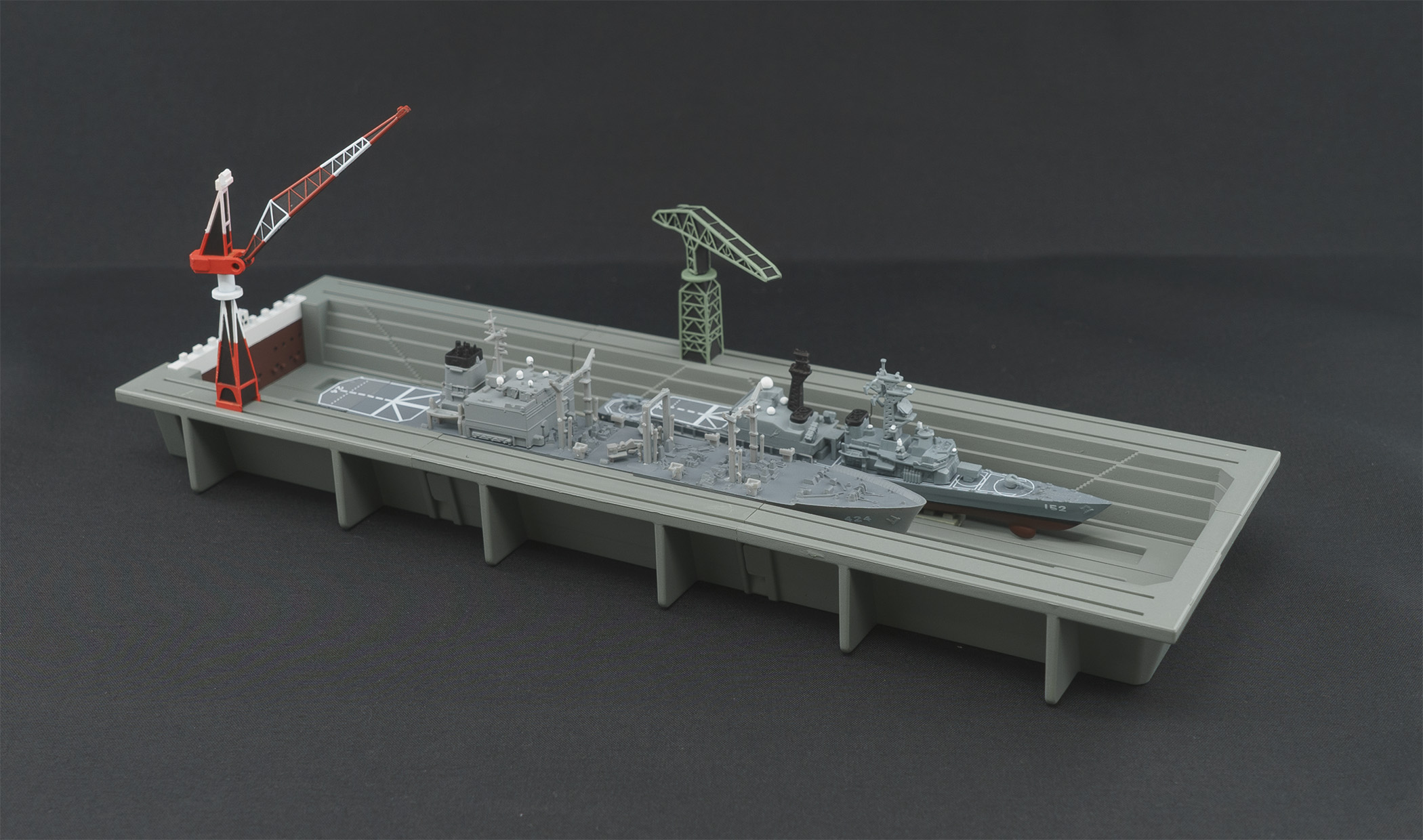 また、整備・点検・改修の際に入渠するドックもラインナップに加えました。ドックの拡張パーツを追加して組み立てれば、いずも型護衛艦の入渠も可能になります。