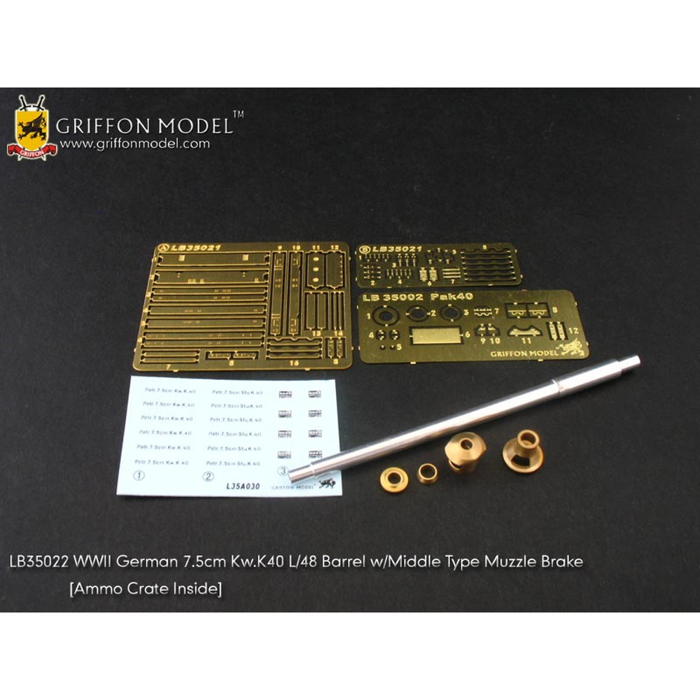 第二次大戦のドイツ軍戦車が装備した戦車砲、7.5cm Kw.K40L/48の金属製砲身セットです。