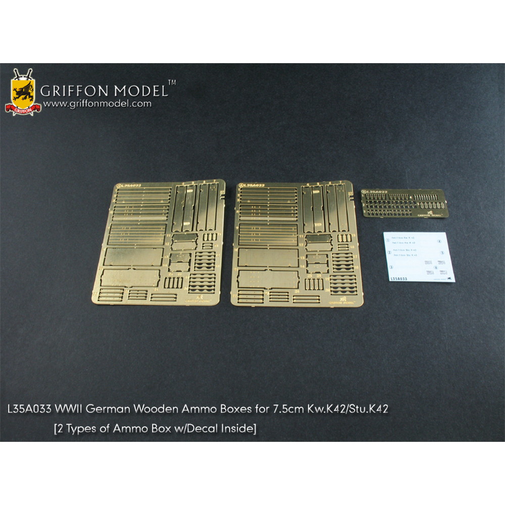 セットには第二次大戦でドイツ軍が開発、装備した主力戦車砲7.5cm砲の砲弾を収納するケースを再現するためのエッチングパーツが収録されています。