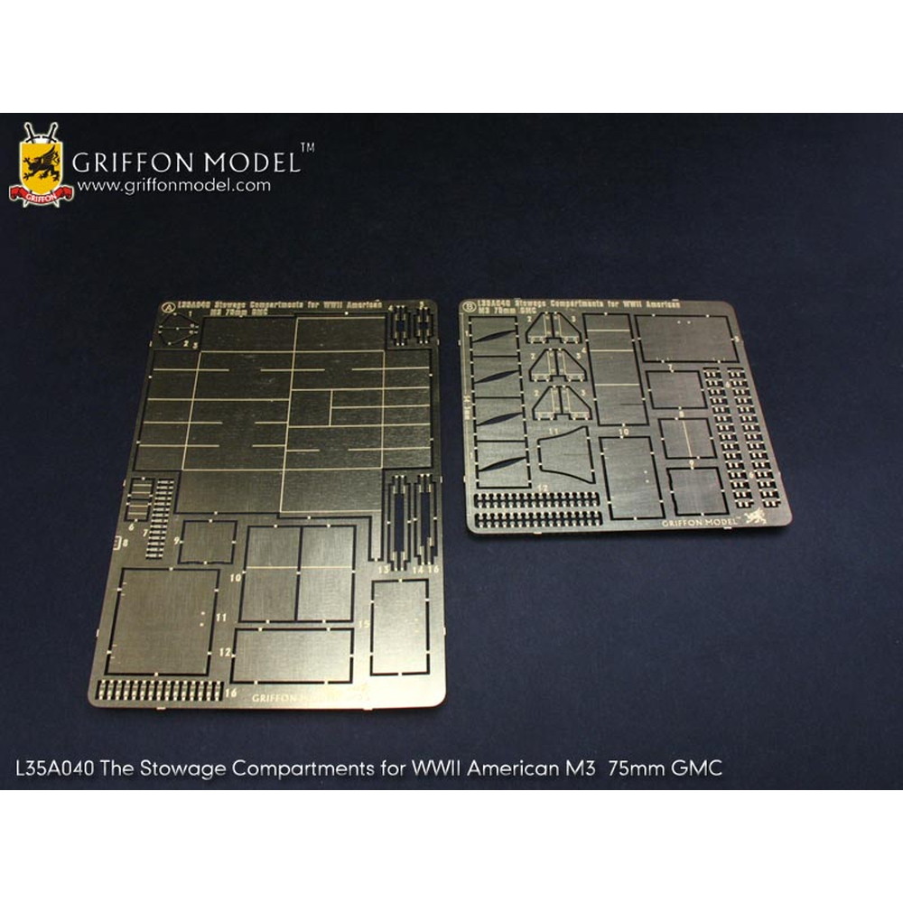 セットには第二次大戦でアメリカ軍が開発、装備したM3 75mm対戦車自走砲を1/35スケールで再現したサイバーホビーのキット(キット№6467)の後部キャビン収納コンパートメント用エッチングパーツが収録されています。