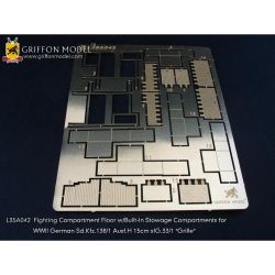 セットにはオープントップの戦闘室内をさらに繊細に仕上げる戦闘室フロアのエッチングパーツが収録されています。床板のパーツは滑り止めのパターンもシャープに再現。そして、実車同様にその下に収納スペースをしっかりと表現。開閉を選んで組み立てることで情景の展開も広げていただけます。