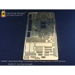 セットには8トンハーフトラックの荷台後部床下にスペアタイヤを収めるためのロッカー用エッチングパーツとその両サイドに設けられた収納ロッカーを再現するパーツが用意されています。扉やヒンジのディテールも詳細に表現。キットのリヤ周りをシャープに演出します。