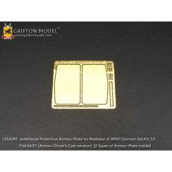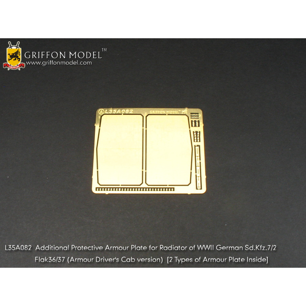 このセットは装甲キャブを装備したSd.Kfz.7シリーズのキットをさらにディテールアップ。8トンハーフトラックの車体前部、ラジエターグリルの前に取り付けられた装甲板のパーツなどを収録。2タイプがセットされ、ボルトなどのディテールの違いを再現しています。