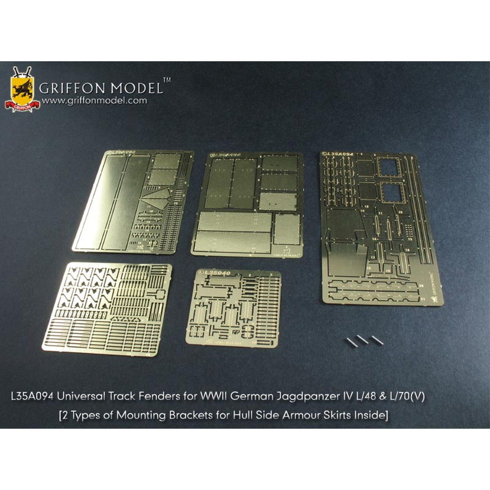 1/35スケールで第二次大戦のドイツ軍駆逐戦車、IV号駆逐戦車L/48&L70(V)を再現したキット用のフェンダーパーツのセットです。