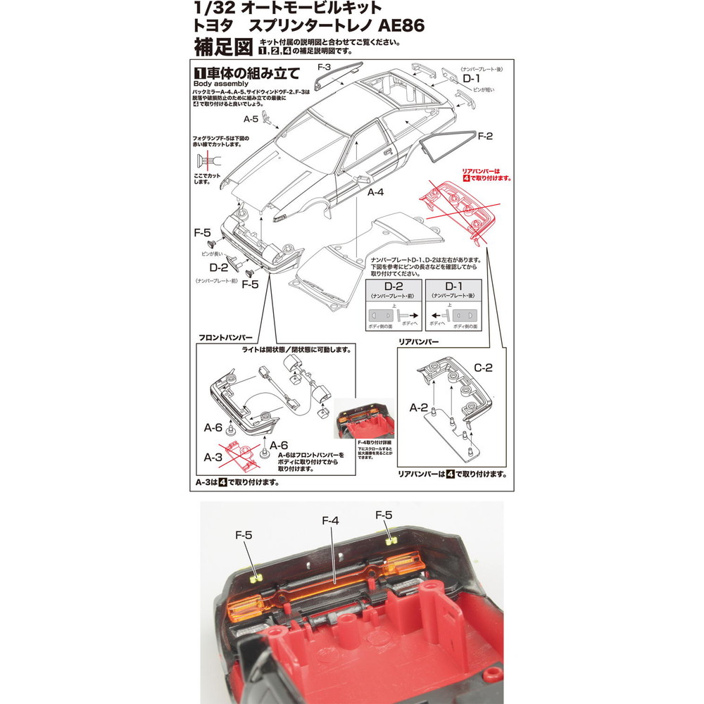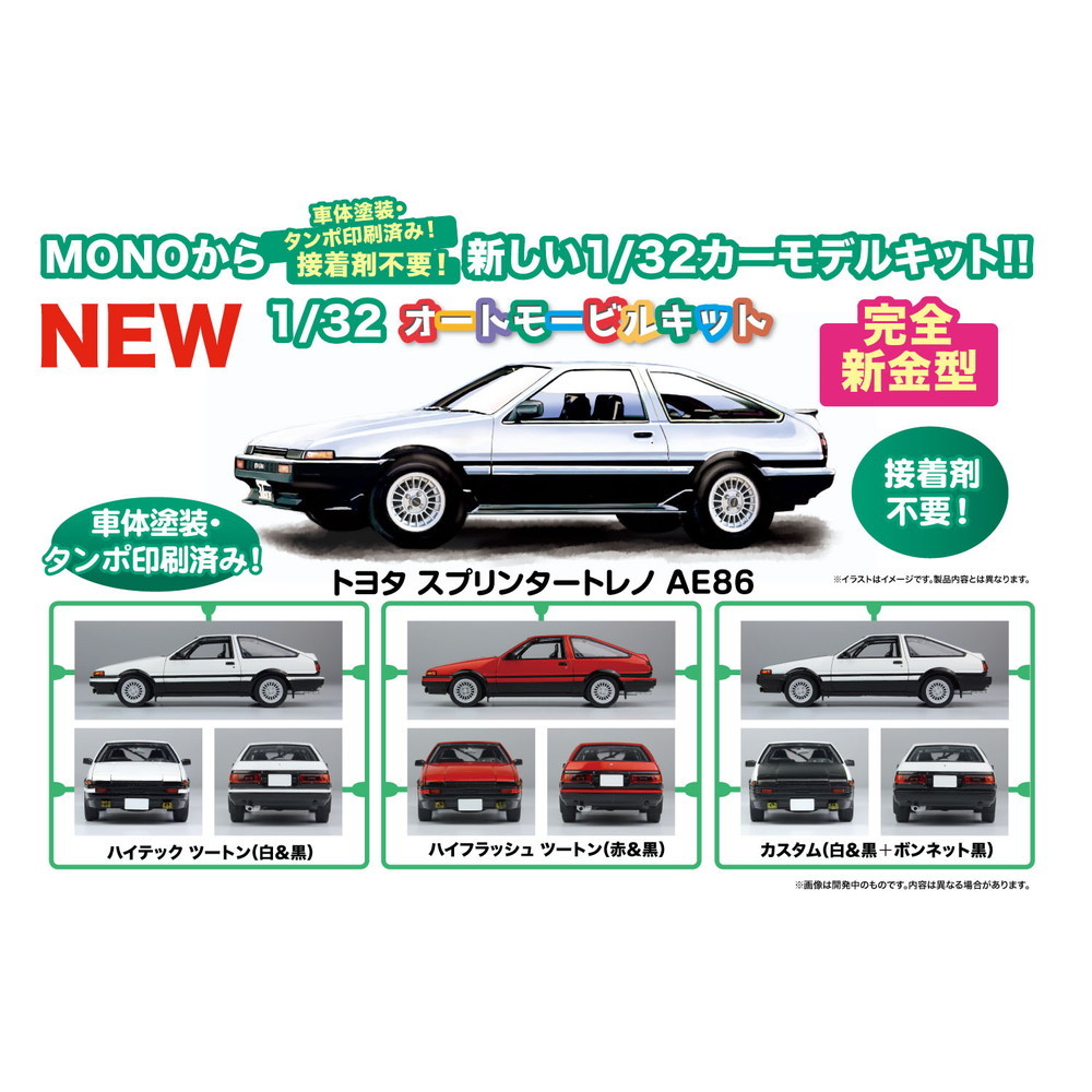 モデルはスプリンタートレノ AE86を1/32スケールで再現したプラスチックモデル組み立てキットです。
