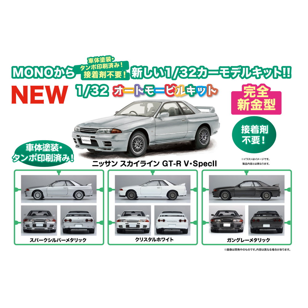 モデルはR-32タイプのスカイラインGT-R V・SpecIIを1/32スケールで 再現したプラスチックモデル組み立てキットです。