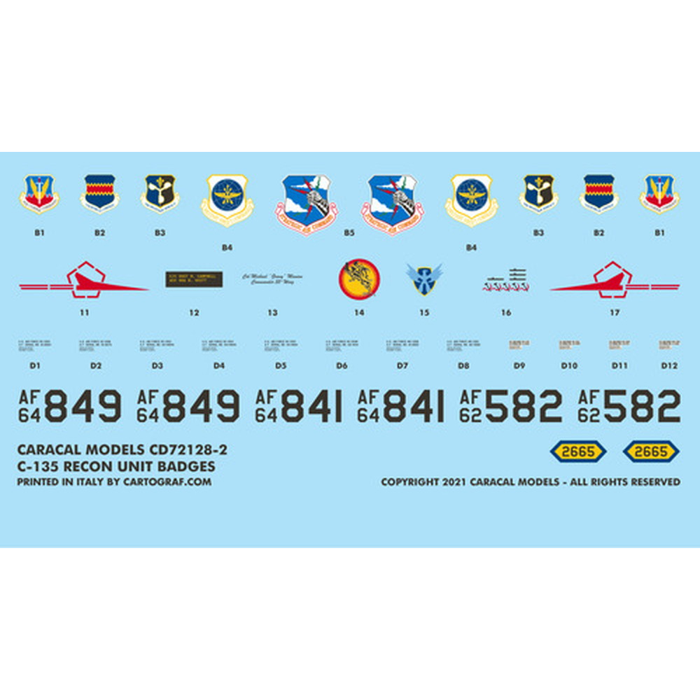 このセットは1/72スケールのC-135偵察機のモデルに対応したデカールのセットです。