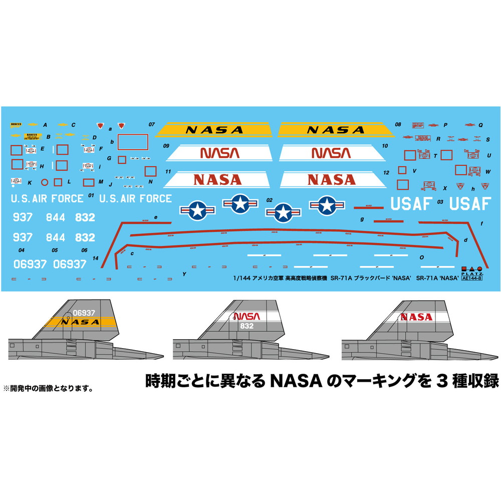 プラッツの1/144シリーズで大好評を頂いたアメリカ空軍の高高度戦略偵察機、SR-71ブラックバードが新しいマーキングで登場です。
