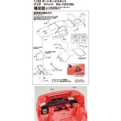 マツダのスポーツカーとして高い人気を集めるRX-7の2代目モデル、RX-7(FC型)を1/32スケールで再現したプラスチックモデル組み立てキットです。