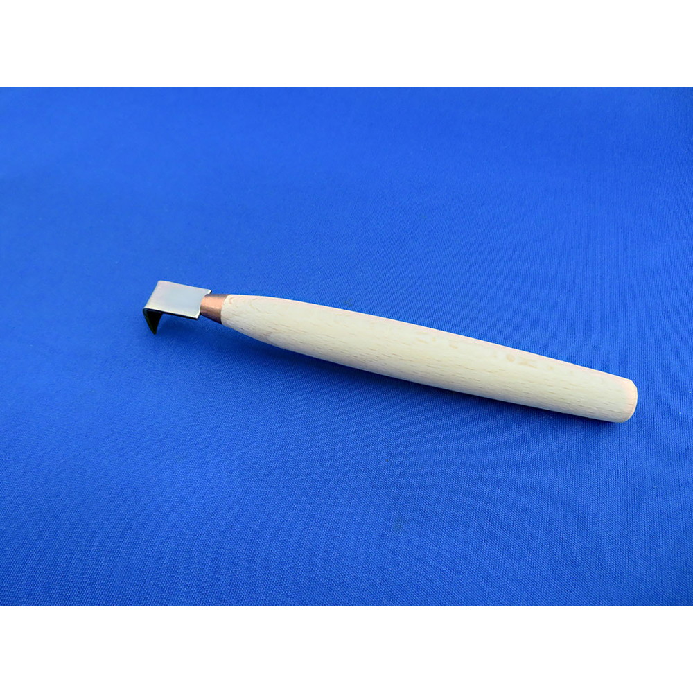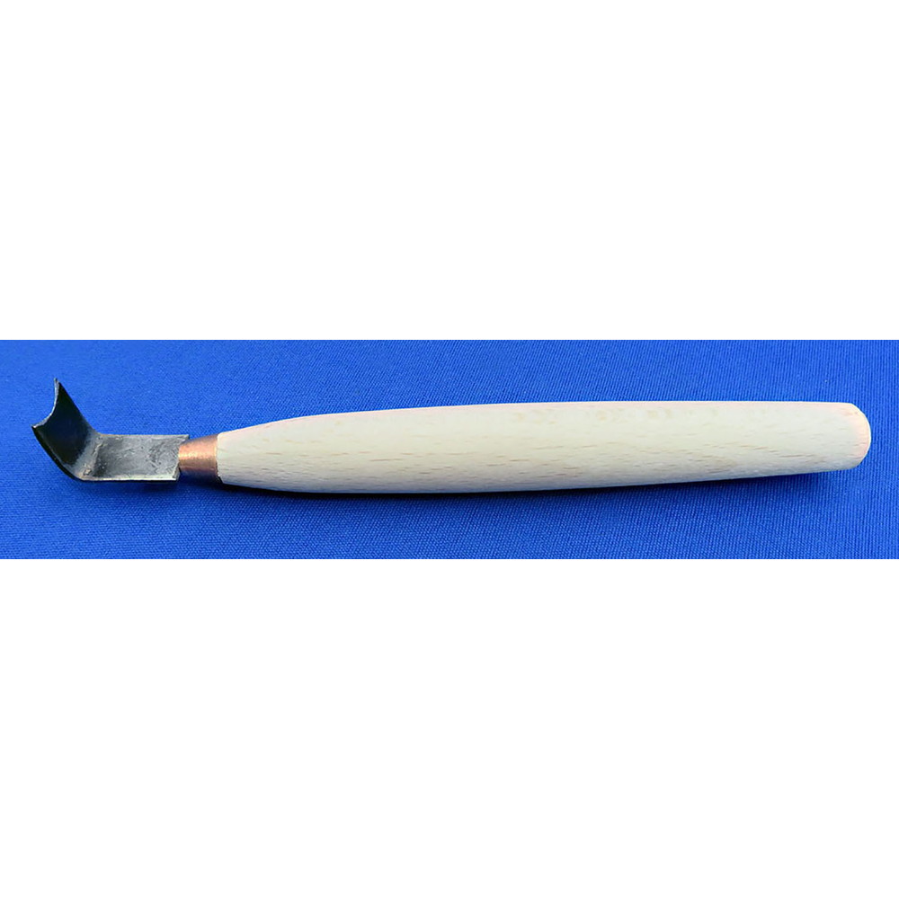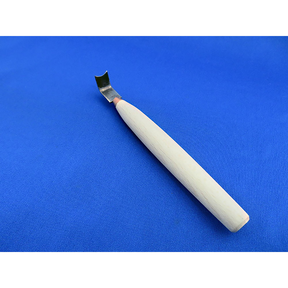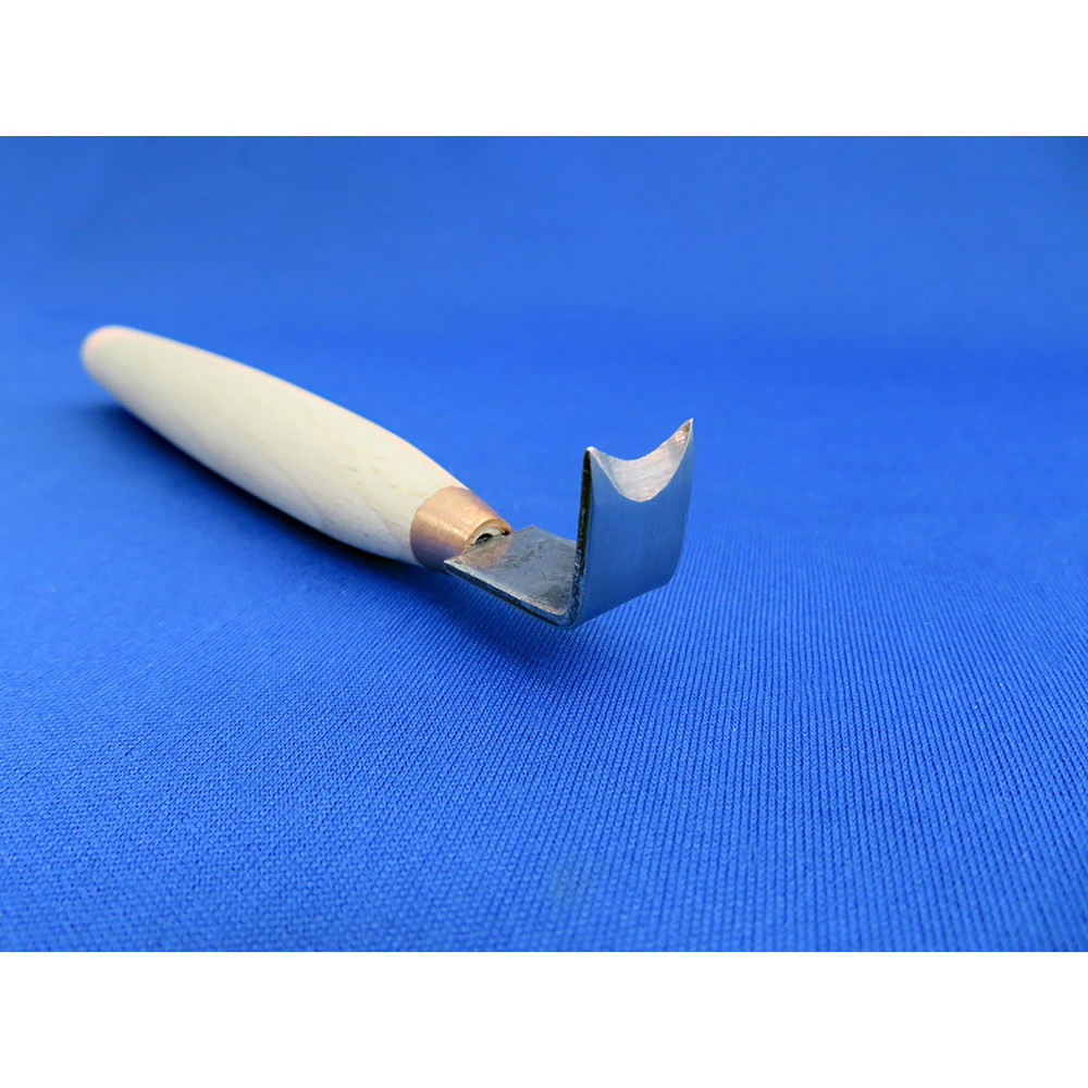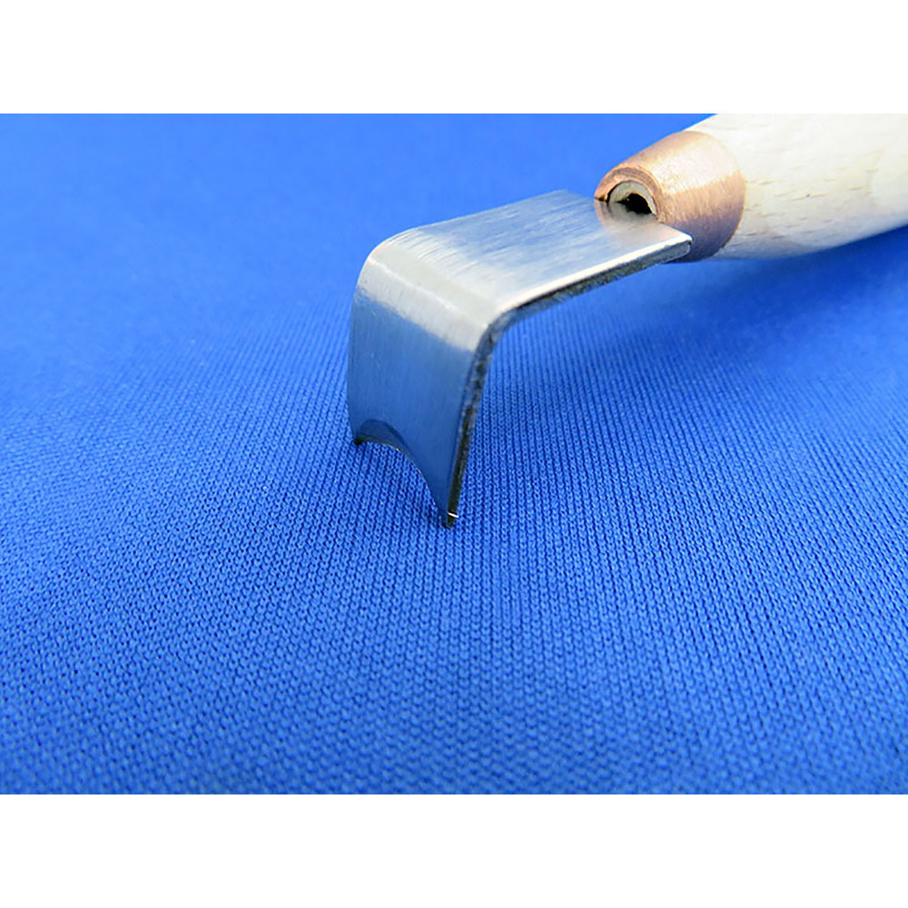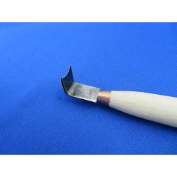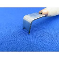 シモムラアレックの高品質・精密加工の刃物で、刃先が曲線のR形状の刃になっているのが特徴。しかも先端部分は鍬のようにL字型に曲げられていますから引いての作業が手軽です。