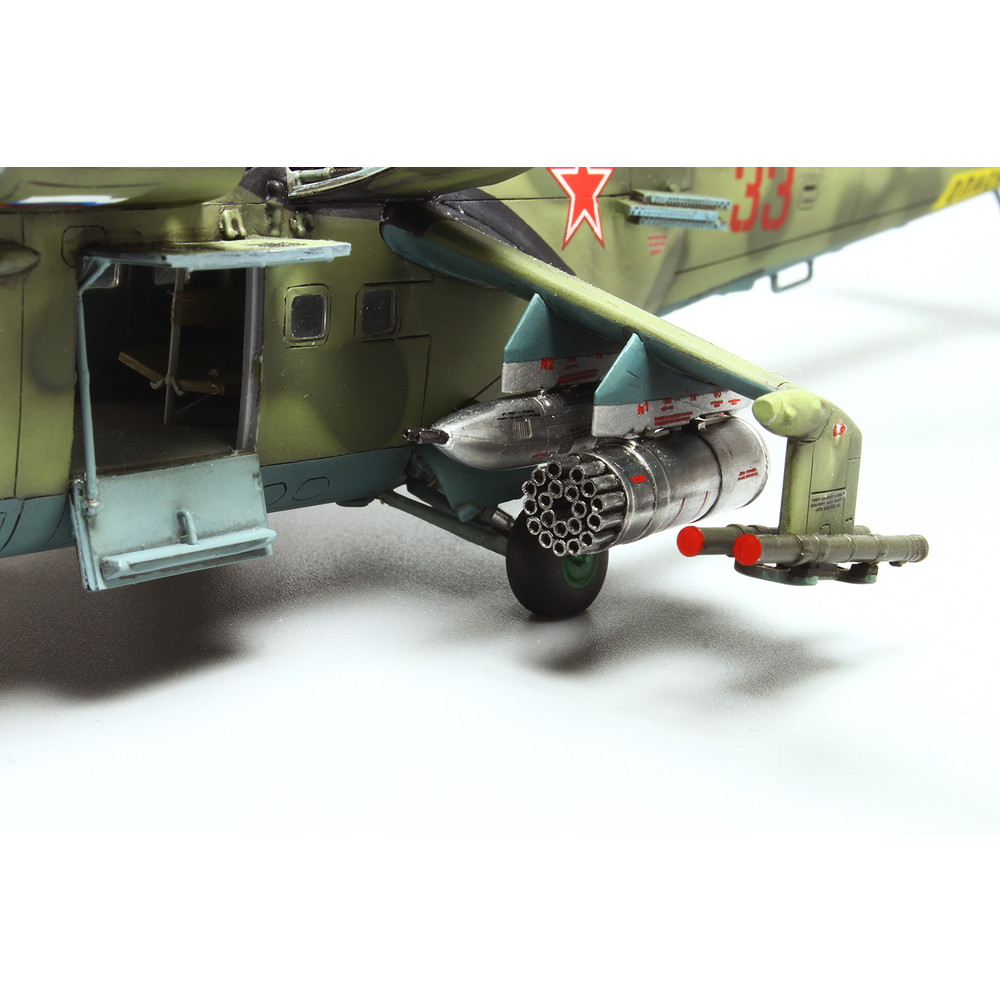 モデルはロシア軍の攻撃ヘリコプターとして知られるMi-24ハインドを1/72スケールで再現したプラスチックモデル組立キットです。