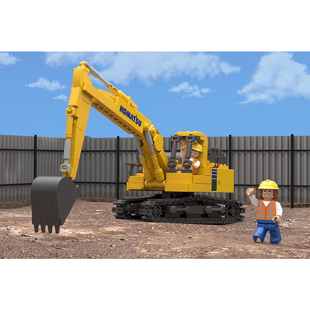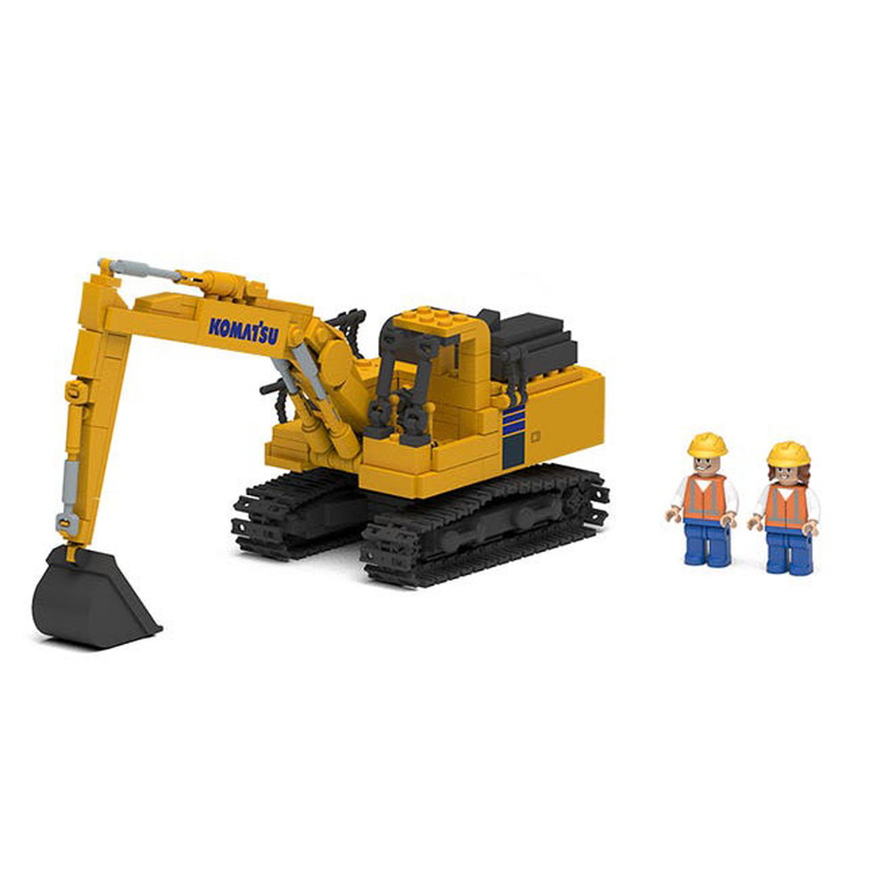 このセットではこども達にも大人気の働く車からコマツの油圧ショベルが組み立てられるパーツが入っています。