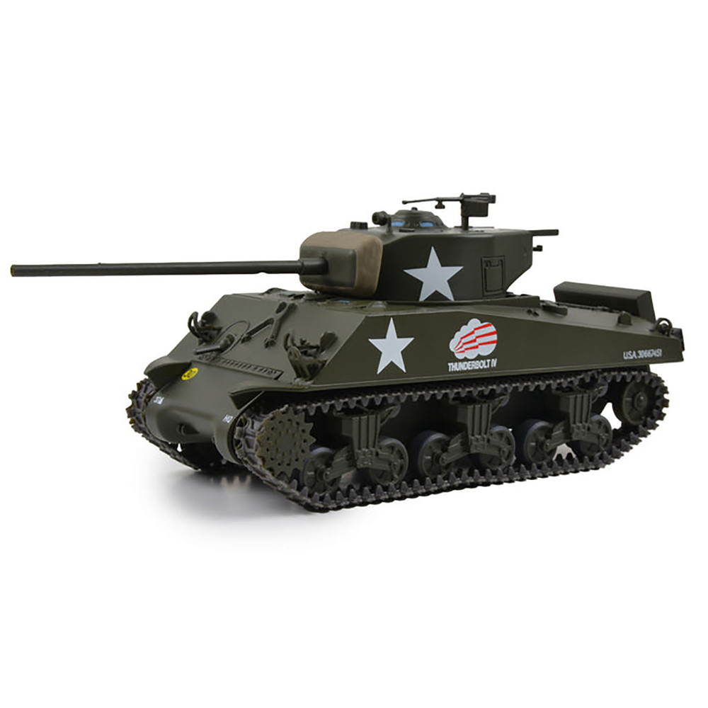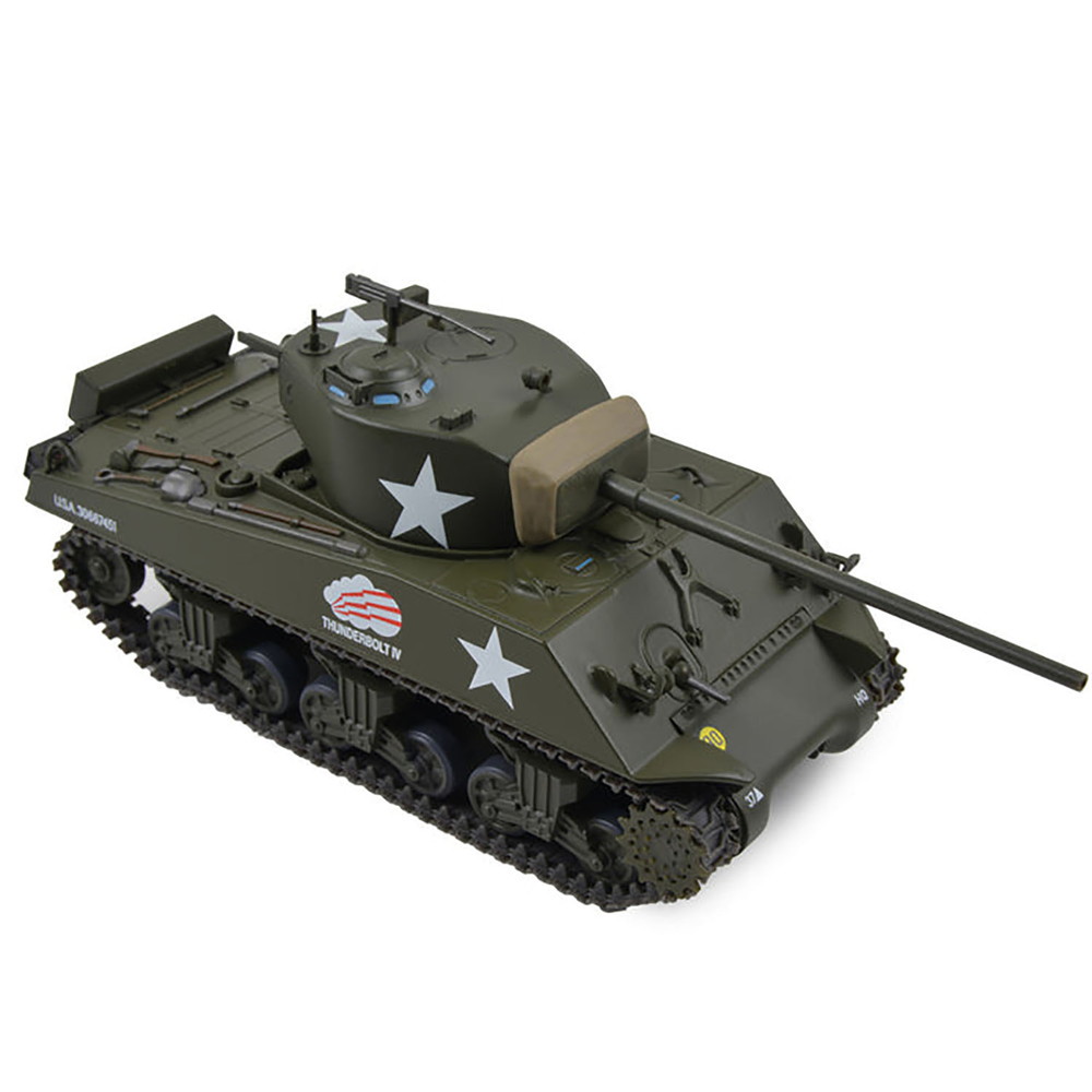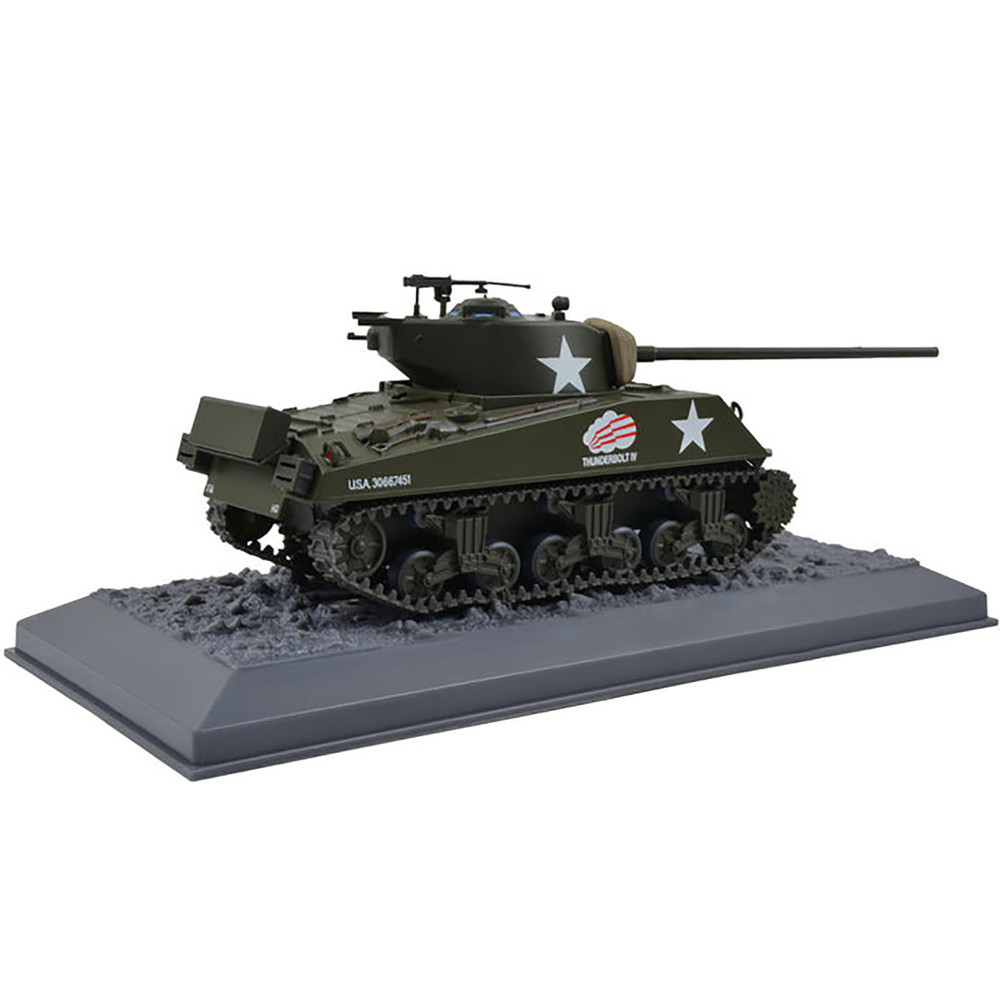このモデルはアメリカ陸軍の第4装甲師団第37戦車大隊の指揮官、クレイトン・エイブラムスの車両、サンダーボルトIVが1944年10月にバストーニュに展開していたときのカラーリングを再現。車体側面に描かれたサンダーボルトの名称とマークが見逃せません。
