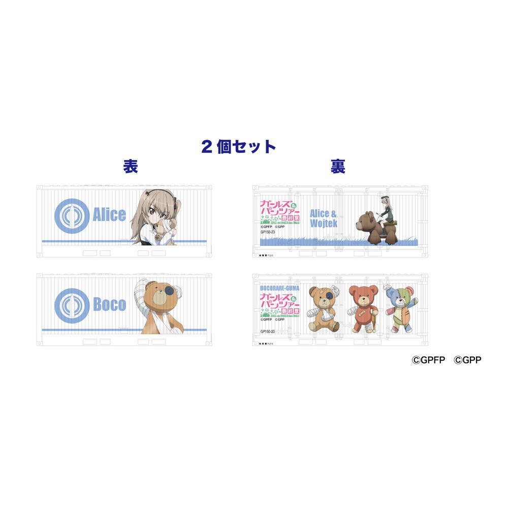 側面に描かれるのはガールズ&パンツァーファンにはおなじみのキャラクターたちのイラスト。このセットでは愛里寿とボコを描きます。コンテナのもう一方の面にも愛里寿とボコが描かれます。