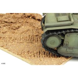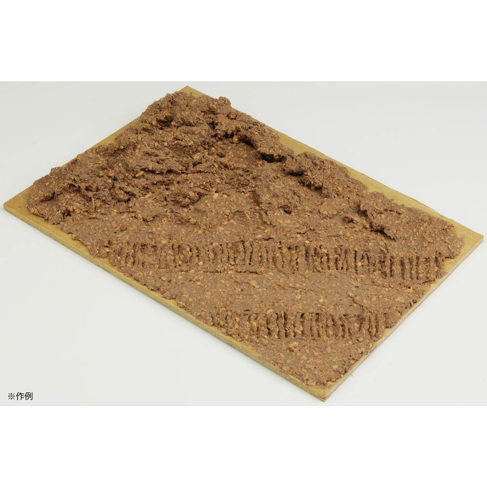 赤土をイメージさせるブラウンの色合いに加えて、クレイの中に小石や礫などをイメージさせる細かな粒が入っているのが特徴。ベースに盛り付けるだけで不整地路面、地面の雰囲気を簡単に再現していただけます。
