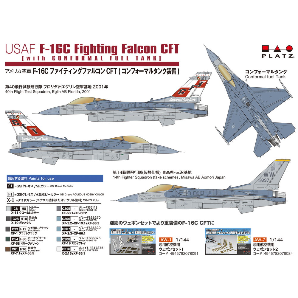 そして、マーキングはコンフォーマルタンク装備試験機と、実戦配備想定(三沢)の2種をセット。一味違う姿のF-16をお楽しみください。