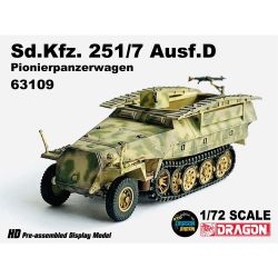 モデルは装甲兵員輸送車、Sd.Kfz.251の装甲工兵車両タイプ、Sd.Kfz.251/7を再現した1/72スケールの塗装済み完成品です。