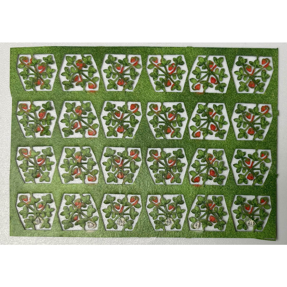 戦闘シーンとは一味違うミリタリー情景や鉄道模型のレイアウトに広がるいちご畑の情景など、手軽に使える嬉しい素材です。