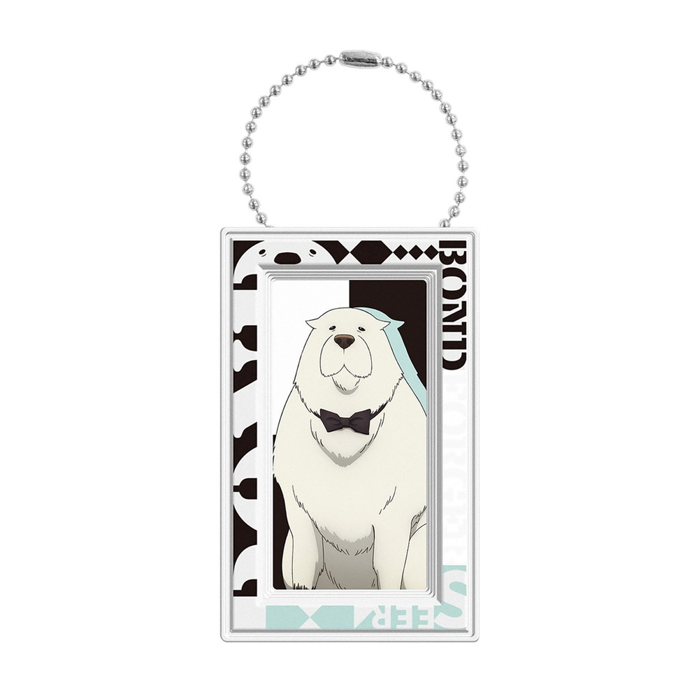 キャラクターイメージのデザインフレーム、カードと、飾り置きができるスタンドポール、ボールチェーンのセット。