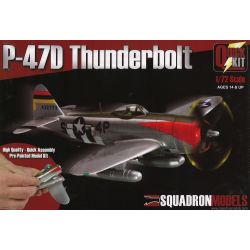 第二次大戦中にアメリカ陸軍が開発し、配備運用した大型の戦闘機がP-47Dサンダーボルトです。エンジンには当時最強を誇った2000馬力を発生するプラット&ホイットニーのR-2800、18気筒星型空冷エンジンを搭載。排気タービンも装備して最高速度690km/hを誇りました。初飛行は1941年5月。1943年からはヨーロッパ戦線に参加。当初、イギリスからドイツ本国に空爆に出かける連合軍爆撃機部隊に同行、護衛の任務につきましたが、新鋭のP-51マスタングが配備されるとその役目を頑丈な機体を生かした地上攻撃へと移し、終戦まで活躍したのです。各種タイプが生み出された中で代表的なタイプとなったのがD型でした。D型の中でも改良が実施され、当初キャノピー後部から尾翼までをつなげたレザーバックと呼ばれるスタイルを持っていましたが、視界確保を目的にバブルタイプのキャノピーを装備したタイプが登場。D型も各タイプを合わせて12000機以上が生産されました。