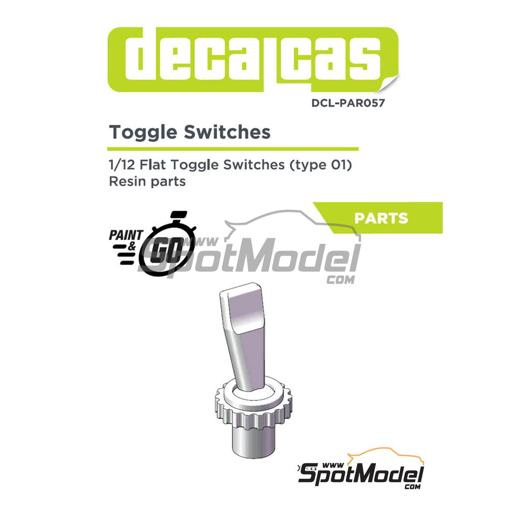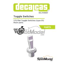 このセットは1/12スケールのカーモデルに使用できるディテールアップパーツのセットです。モデル化されているのは様々なタイプの車両のダッシュボードに取り付けられるトグルスイッチを再現しています。