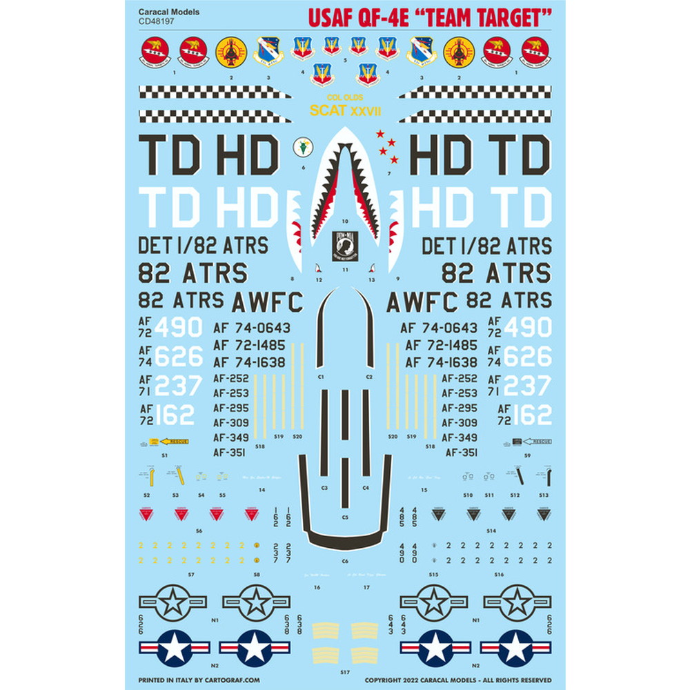 このセットはアメリカ空軍が運用したフルスケールのターゲットドローン、標的機に改造されたF-4ファントムIIの機体のマーキングを収録しています。