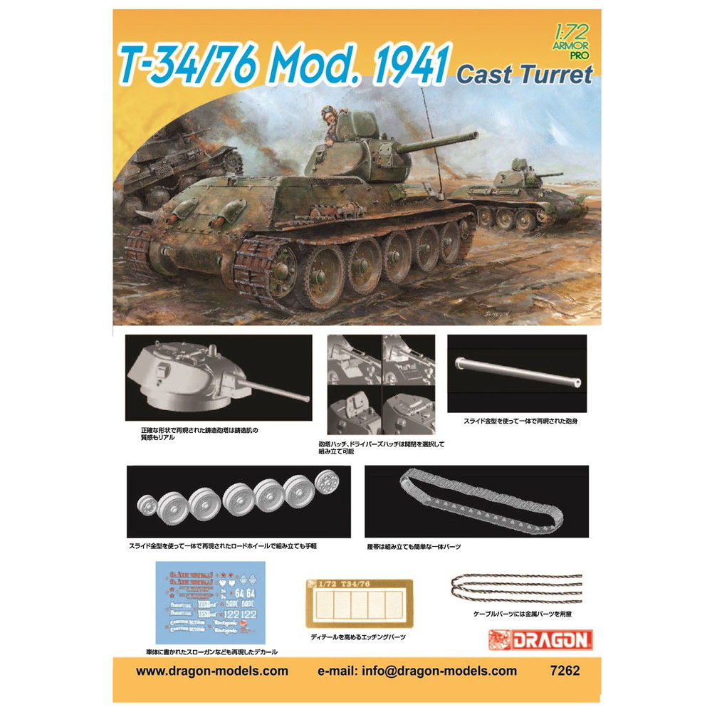 モデルはT-34/76の1941年型を1/72スケールで再現したプラスチックモデル組み立てキットです。
