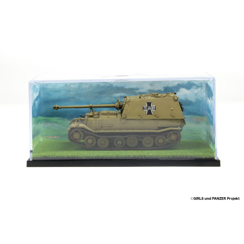 もちろん、主役のエレファントは黒森峰女学園の車輌でそのマークやカラーをしっかりと再現。重量感あふれる固定戦闘室を持ったスタイルが見逃がせません。