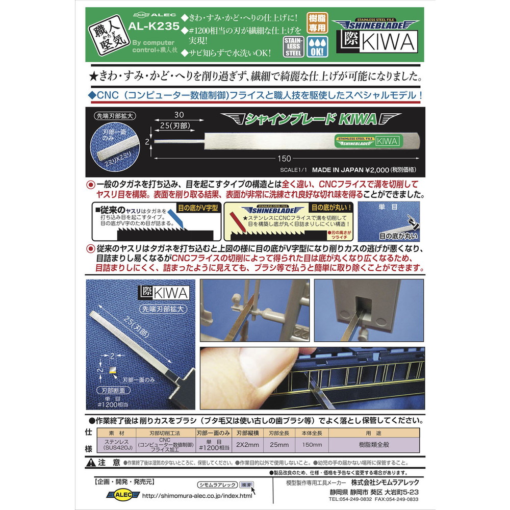 ※職人堅気 樹脂専用 ステンレス製ヤスリ シャインブレード KIWA(AL-K235)の発売に合わせ、職人堅気 シャインブレード KIWA(AL-K78)は廃盤となります。