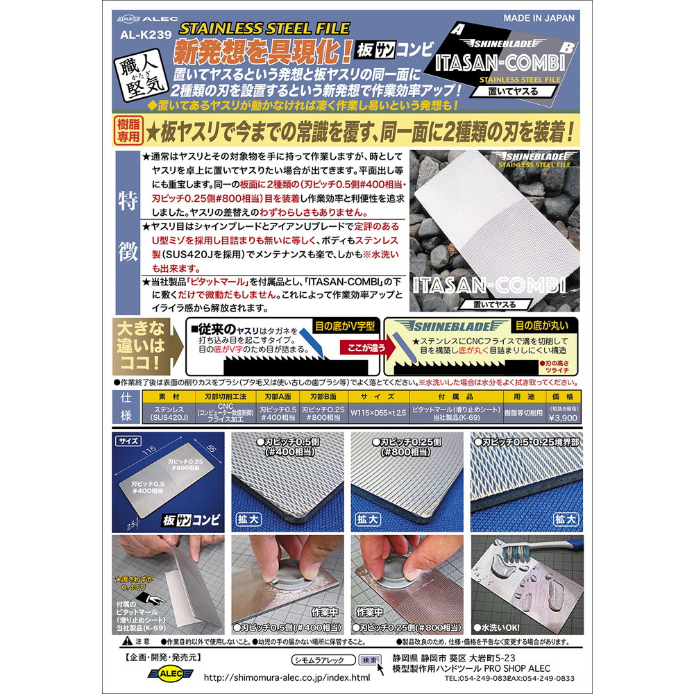※職人堅気 置いてヤスる シャインブレード ITASAN-COMBI(板サンコンビ)(AL-K239)の発売に合わせ、職人堅気 置いてヤスる シャインブレード ITASAN-COMBI(板サンコンビ)(AL-K72)は廃盤となります。