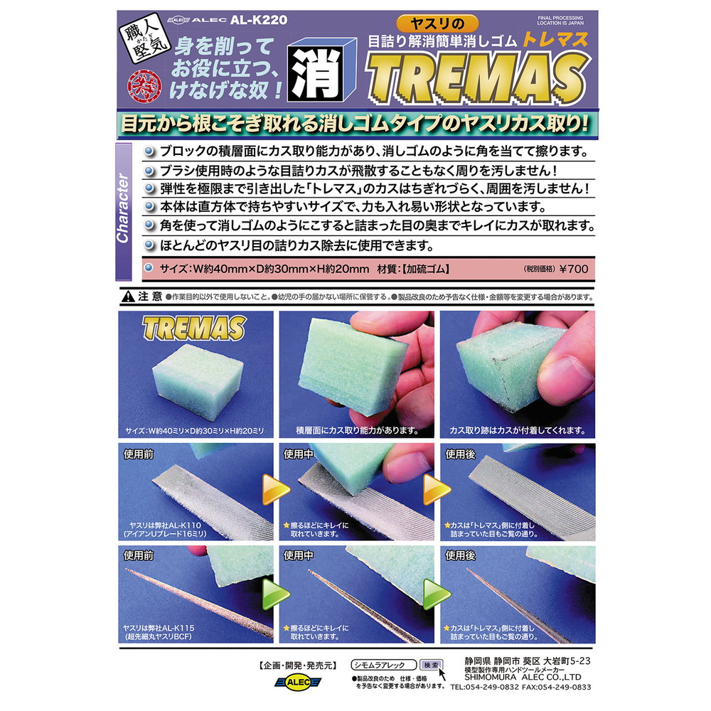 ※職人堅気 目詰まり解消簡単消しゴム「トレマス」(AL-K220)の発売に合わせ、職人堅気 目詰まり解消簡単消しゴム「トレマス」(AL-K161)は廃盤となります。