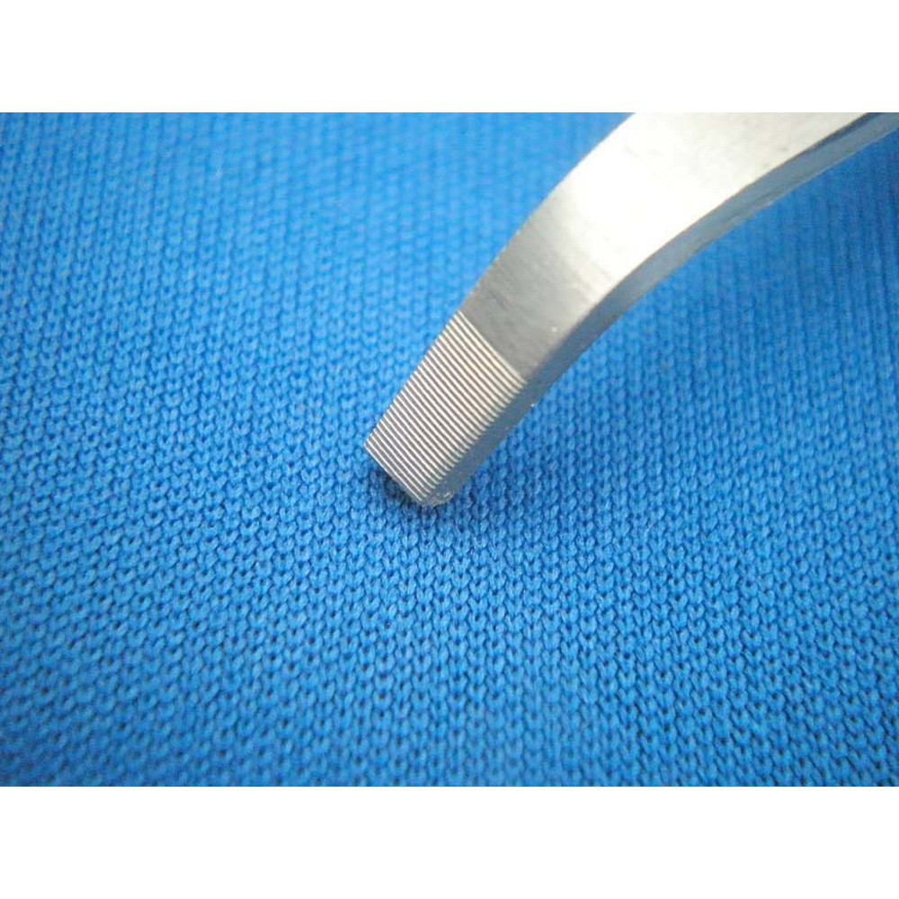 従来のヤスリはタガネを打ち込むと上図の様に目の底がV字型になり削りカスの逃げが悪くなり、目詰まりし易くなるがCNCフライスの切削によって得られた目は底が丸くなり広くなるため、目詰まりしにくく、詰まったように見えても、ブラシ等で払うと簡単に取り除くことができます。
