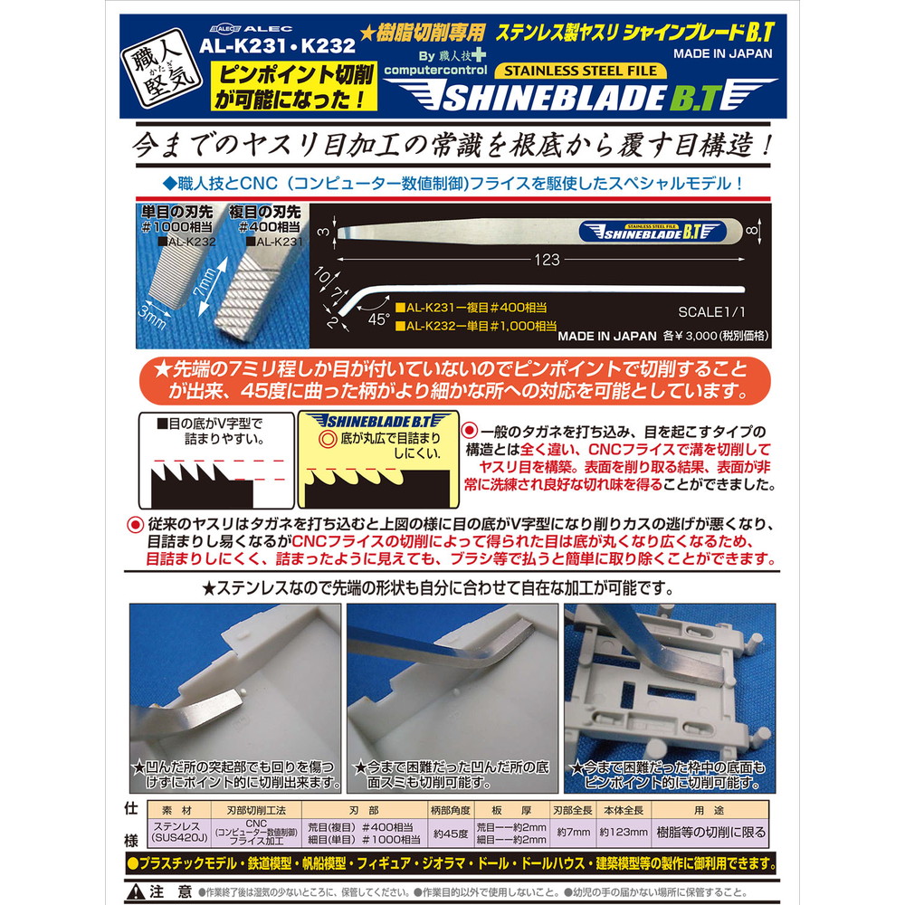 ※職人堅気 樹脂専用 ステンレス製ヤスリ シャインブレード B.T (細目職人堅気 樹脂専用ヤスリ シャインブレード B.T (細目 #1000)(AL-K53)は廃盤となります。