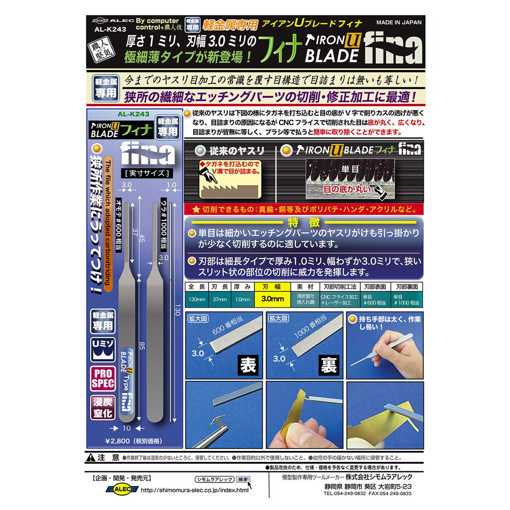 ※職人堅気 軽金属専用ヤスリ アイアンUブレード フィナ(AL-K243)の発売に合わせ、職人堅気 軽金属専用 鋼ヤスリ アイアンUブレード フィナ(AL-K128)は廃盤となります。