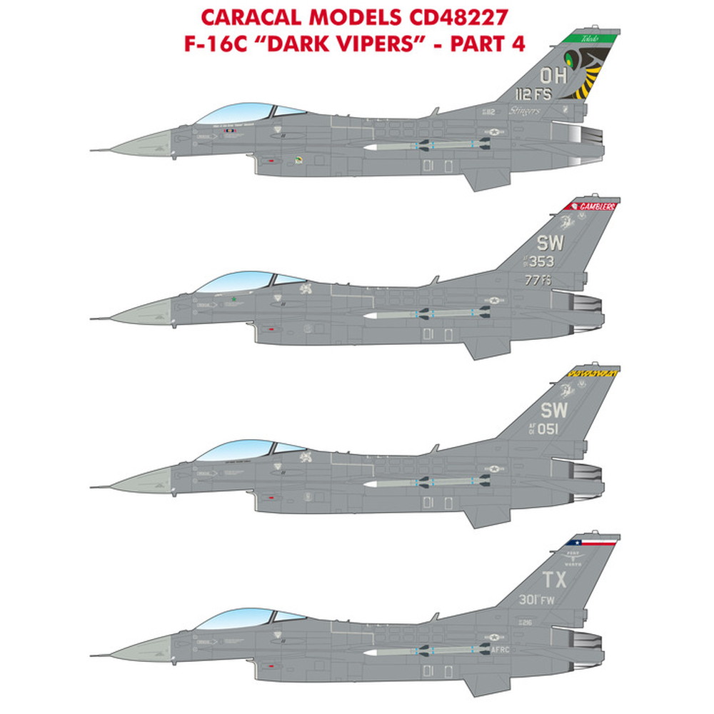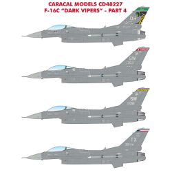 このセットはアメリカの傑作戦闘機として幅広く運用されているF-16Cの機体のマーキングを再現しています。中でもアメリカ空軍の各部隊が新しい「HaveGlassV」塗装スキームを使用してから登場しているダークバイパーズのシリーズのマーキングをセレクトしています。